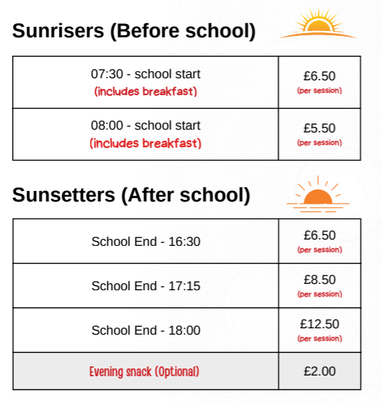 Breakfast and After School Clubs Timetable